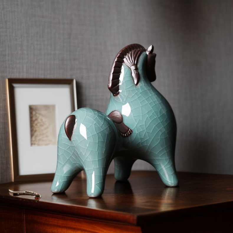 세라믹 당나라 말 장식품 거실 현관 술장 테이블 장식 사무실 책상 십이지신 말 장식