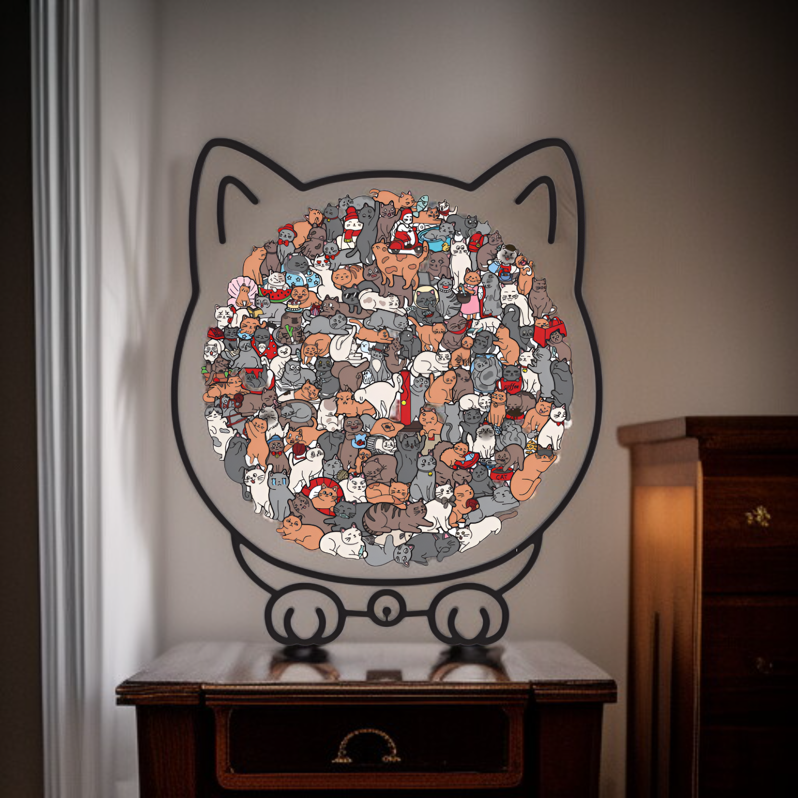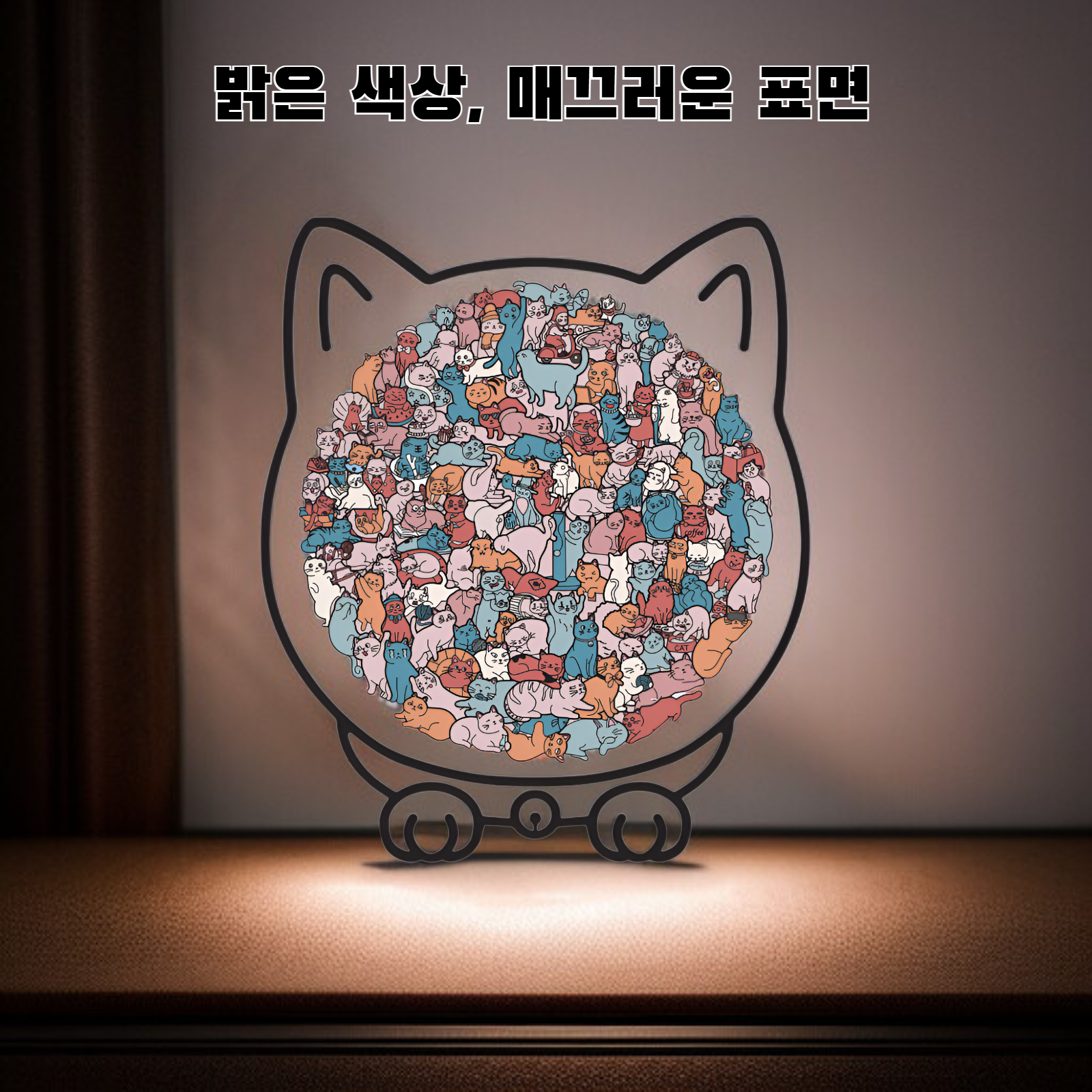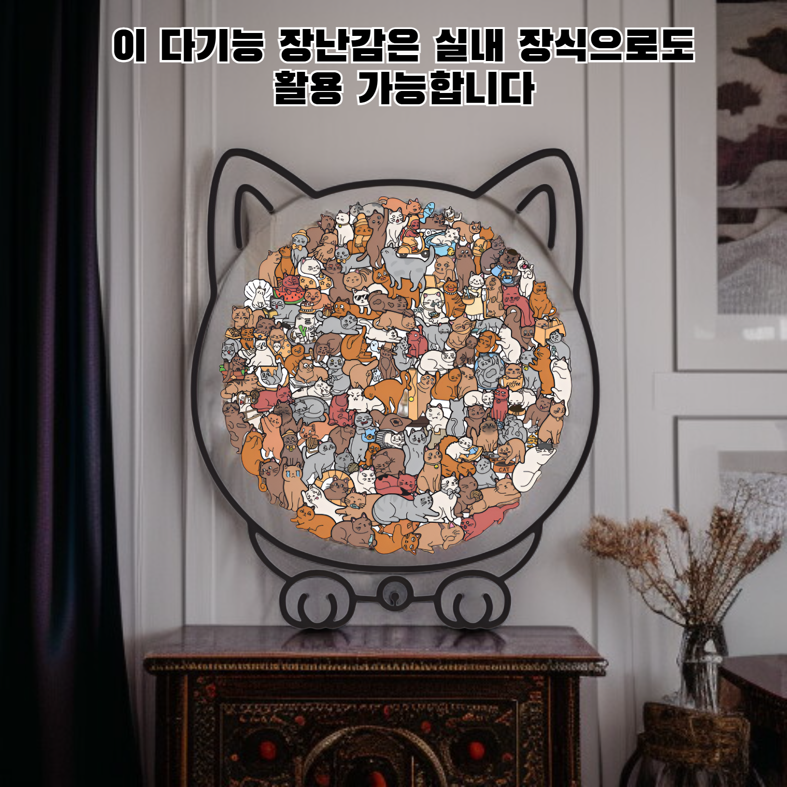 ● 귀여운 고양이 모양 디자인으로 아이들의 호기심과 집중력을 높여주는 나무 퍼즐 장난감입니다.