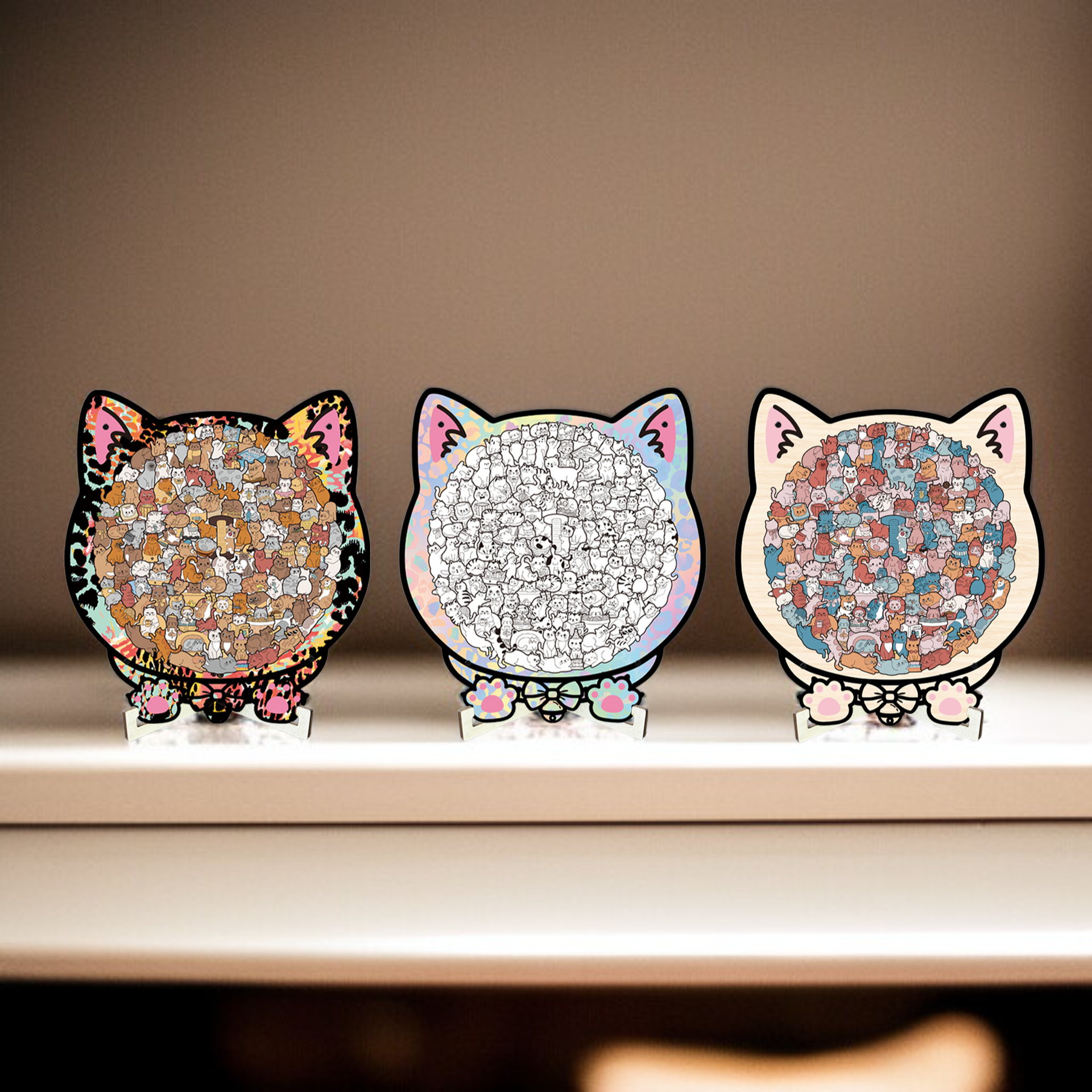 귀여운 고양이 모양 나무 퍼즐 장난감